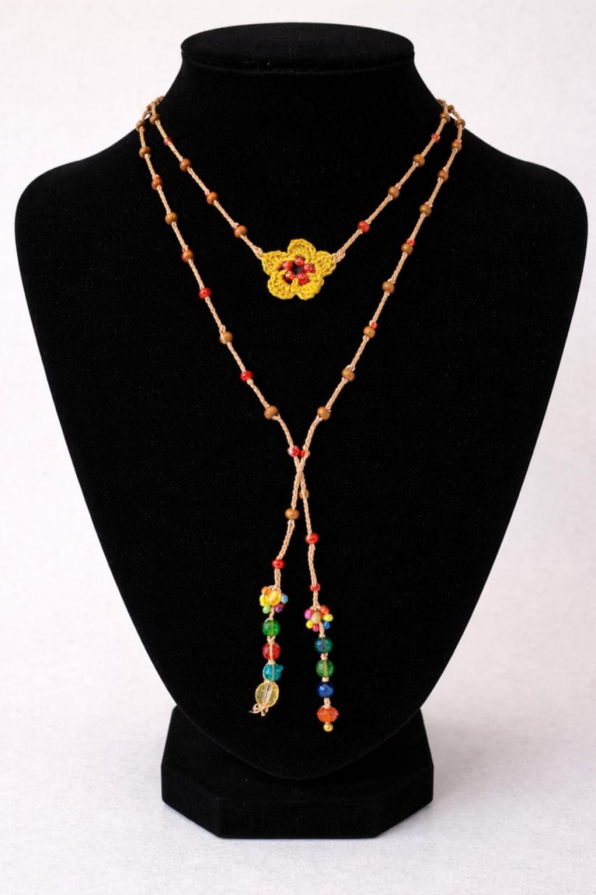 La combinación de colores vibrantes y la textura del crochet hacen que el Collar Modelo Damasco sea una elección excepcional para quienes buscan destacar. ¡Añade un toque de personalidad a tu colección de accesorios! 🌸✨
