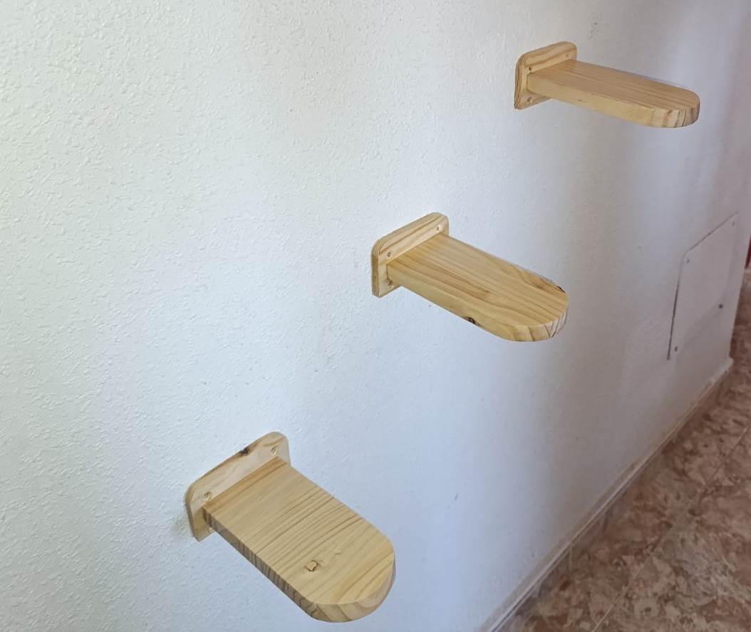 Los escalones son un punto de apoyo con forma redondeada ideal para que tu gato salte de uno a otro. Puedes elegir los que quieras para formar tu composición de pared.
