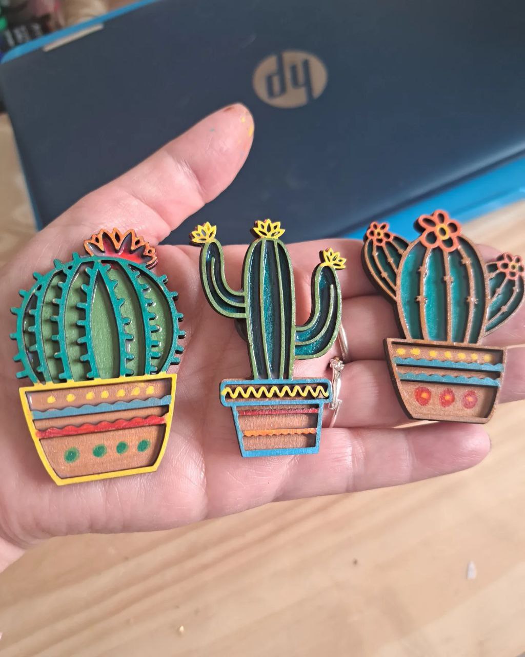 Puedes elegir entre acabado de resina o madera con relieve. Cortados a laser y pintados a mano. Son monísimos y pueden ser también un bonito llavero, si así lo prefieres!!