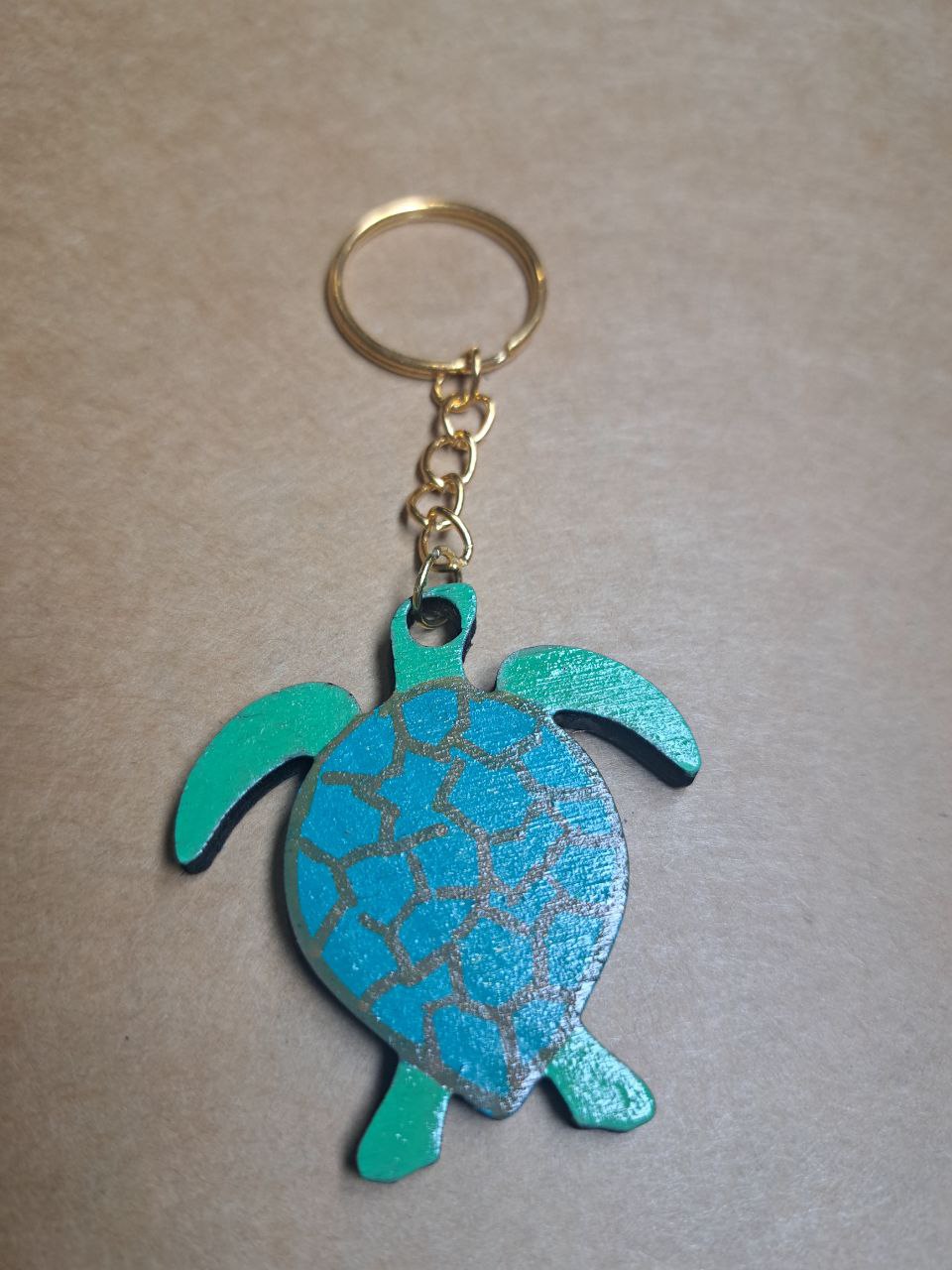 Llavero de madera pirograbado y pintado a mano modelo Tortuga, realizado en madera de 4mm.