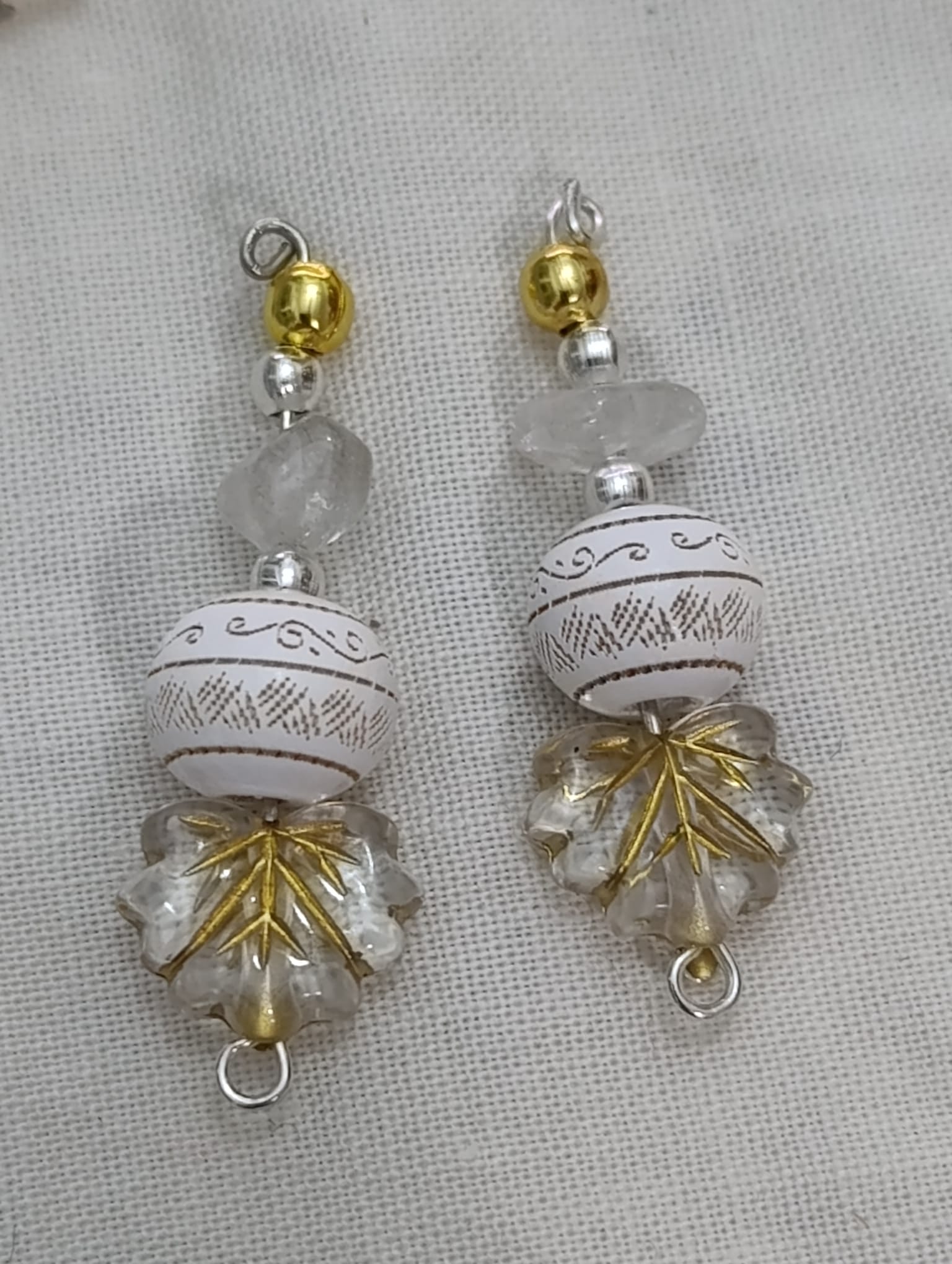 Cada par se ensambla uno a uno con piedras naturales, destellos de cristal, detalles cálidos de madera y brillos marinos de concha de mejillón. El resultado es un juego de colores y texturas que cambia con la luz y convierte cada pieza en totalmente única.