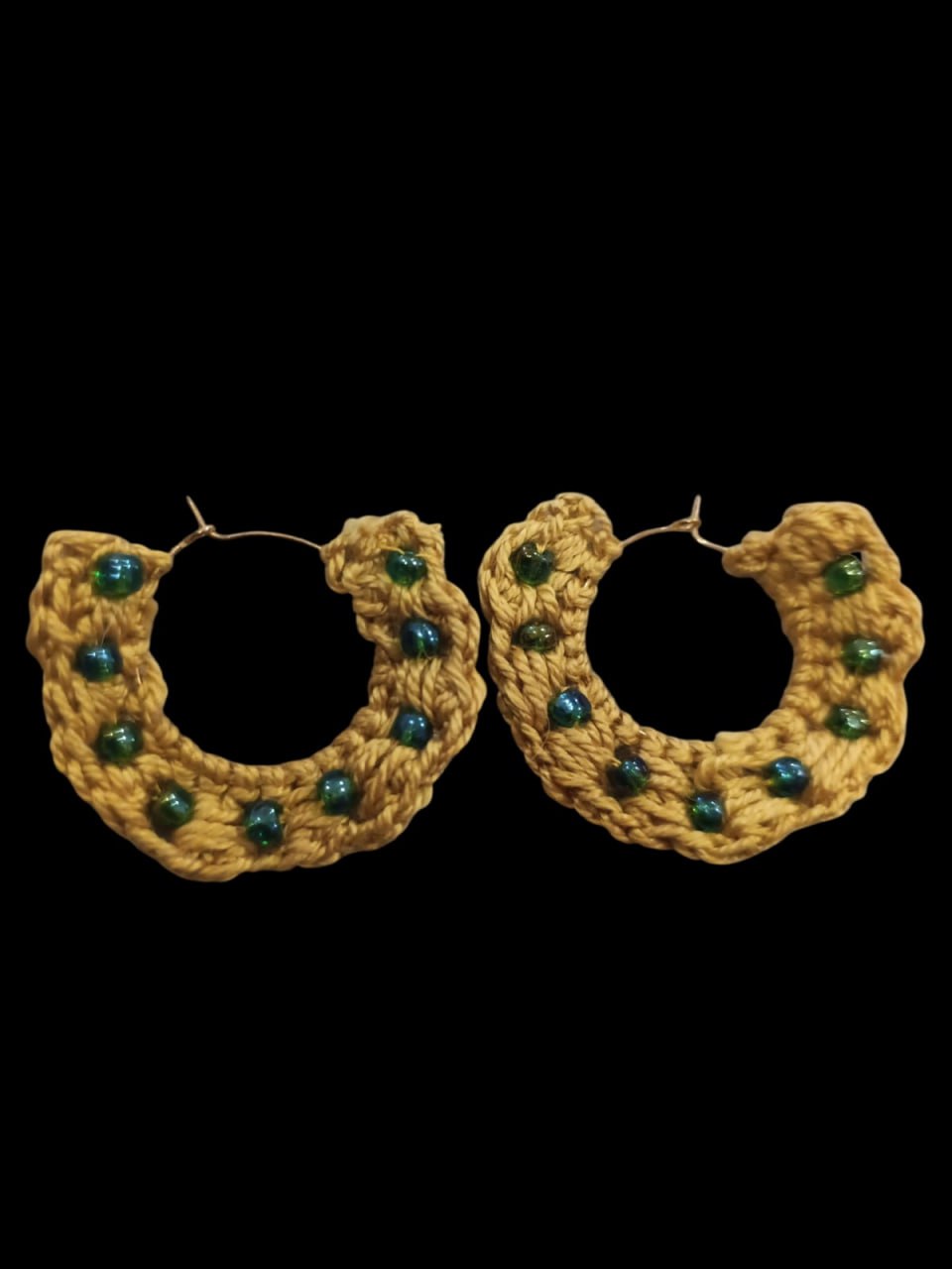 - Tejido a crochet artesanal en dorado mostaza.
