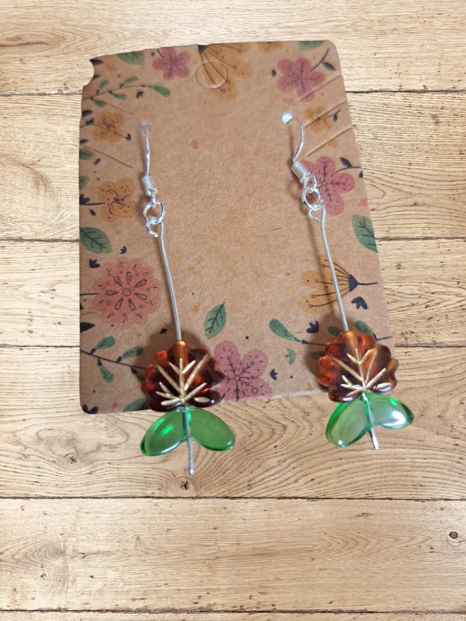Pendientes con pequeñas cuentas en ambar con dorado y verde.